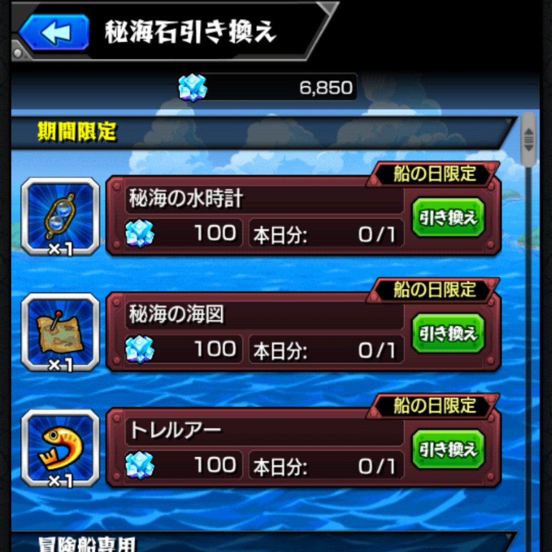 8/8、秘海始まって以来初めての船の日📅 お宝釣りは特に時間の縛りなどはなく、当日中いつでも2回行えると判明😃 25%至宝が仕事して司の方は一気に🍀+9❗️ 限定引換は割引価格で三点が入手可能🔃 後半で役立つから海図や水時計も即ゲット🆗 以前の期間限定デイリーが分散された感じだね👀 pic.twitter.com/TL2EzU1gA8 zU1gA8