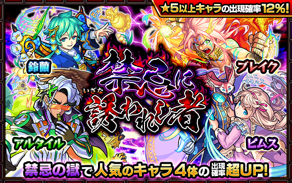 「禁忌の獄」で人気のキャラクター「ブレイク」「鈴蘭」「アルタイル」「ピムス」の出現確率が超UP✨