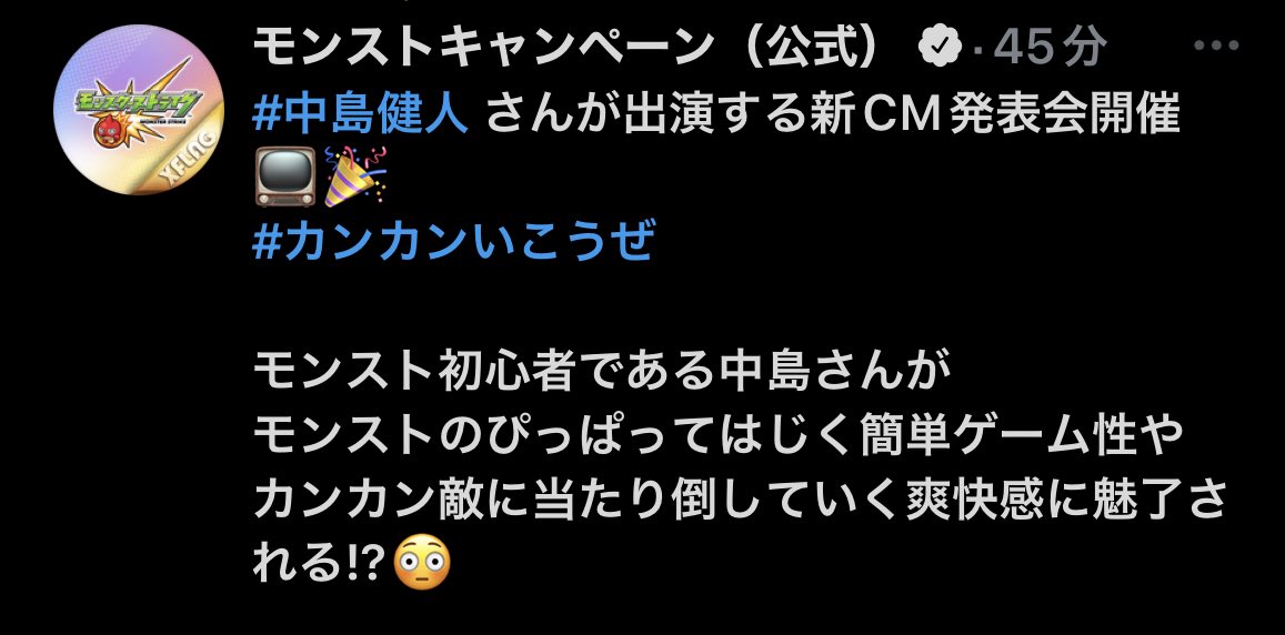 @monst_campaign 中島健人さんのCM起用、誠にありがとうございます!!┏○ペコッ