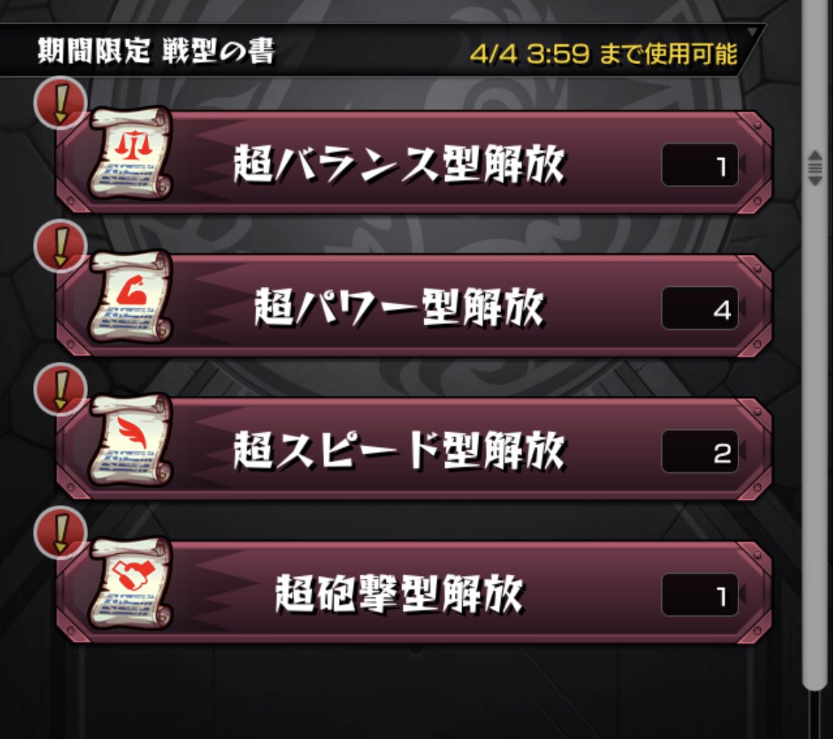 毎・キープガチャ、神引きだった人もそれなりだった人も遊郭潜入ミッションの報酬で手に入れた戦型書を使い忘れないようにね…最後の方で立て続けにスピ書出るとか…終わってみれば手に入った書のバランスが悪かった…バラ書がもっと欲しかったのにぃ!